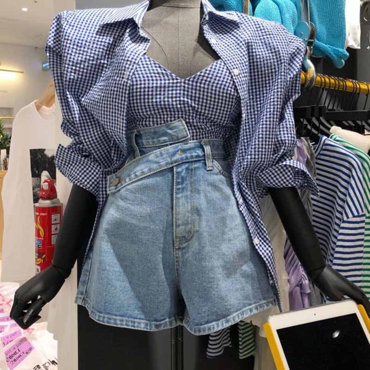 新品 カラーチェック柄キャミソールシャツブラウス大人女子☆ ⦿韓国 オルチャン K-pop アイドル ジャケット スーツ ワンピース カーディガン ニット フーディー トレーナー キャミソール スカート シャツ ブラウス 5B0662558