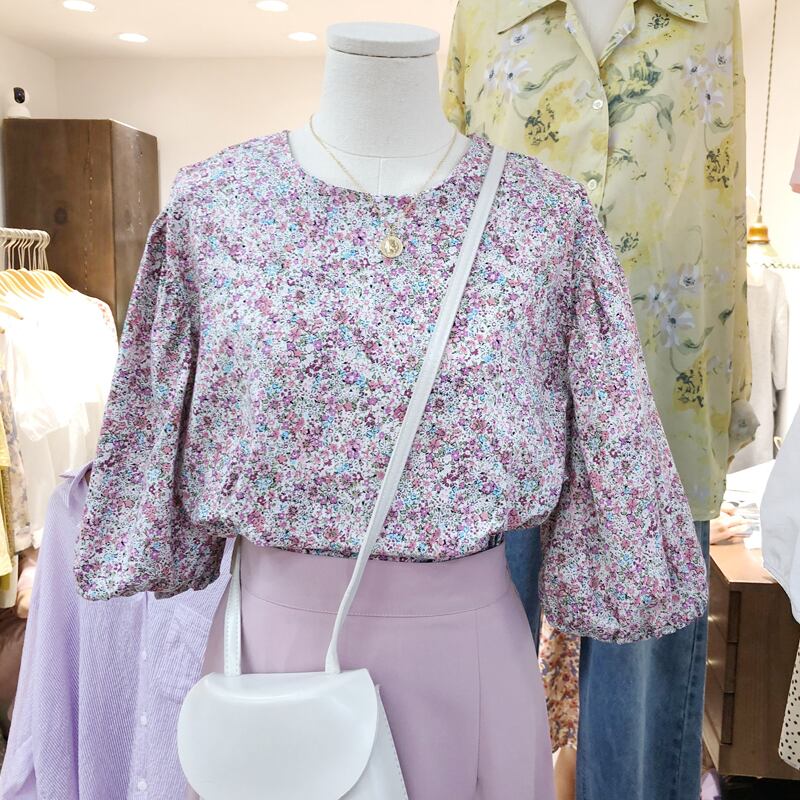 新品 スリーブ花柄シャツブラウス大人女子☆スタンダードトップス レトロ スウィート ⦿韓国 オルチャン K-pop アイドル ジャケット スーツ ワンピース カーディガン ニット フーディー トレーナー キャミソール スカート シャツ ブラウス 5B5031583