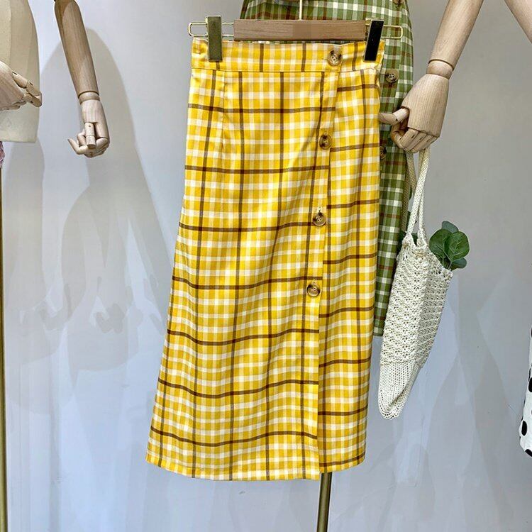 新品 ★チェック柄スカート ♡カラーサイドボタンスリット エラスティック 伸縮 ⦿韓国 オルチャン K-pop アイドル ジャケット スーツ ワンピース カーディガン ニット フーディー トレーナー キャミソール スカート シャツ ブラウス 5B1885515 | K clothig adult