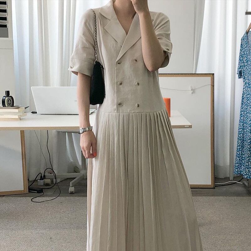 新品 ♡ダブルブレスト♥カワイイ♥半袖スリーブプリーツロングスカート ショート ⦿韓国 オルチャン K-pop アイドル ジャケット スーツ ワンピース カーディガン ニット フーディー トレーナー キャミソール スカート シャツ ブラウス 5A8253121