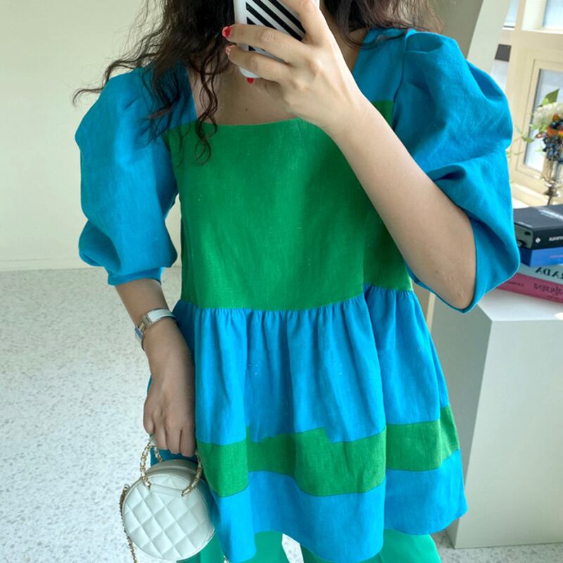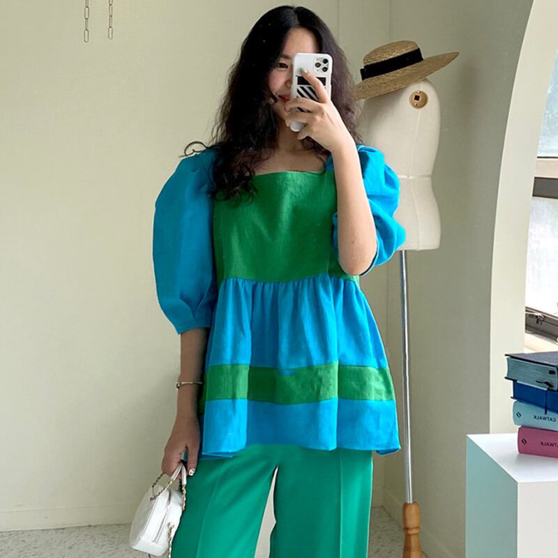 新品 カラー♥カワイイ♥スリーブシャツブラウス スクウェア ⦿韓国 オルチャン K-pop アイドル ジャケット スーツ ワンピース カーディガン ニット フーディー トレーナー キャミソール スカート シャツ ブラウス 5A2699725