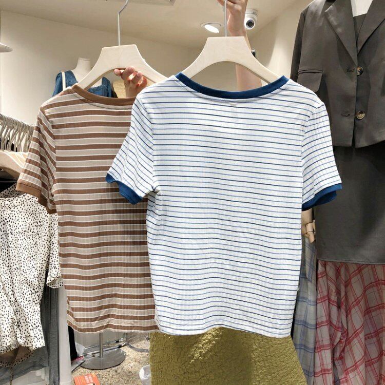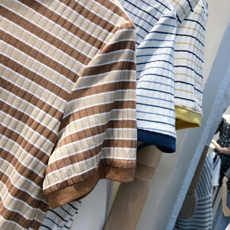 新品 サマーストライプラウンドネックルーズ♥カワイイ♥プルオーバー Tシャツ トップス スウィート 夏物 ⦿韓国 オルチャン K-pop アイドル ジャケット スーツ ワンピース カーディガン ニット フーディー トレーナー キャミソール スカート シャツ ブラウス 5B8970717 | K clothig adult