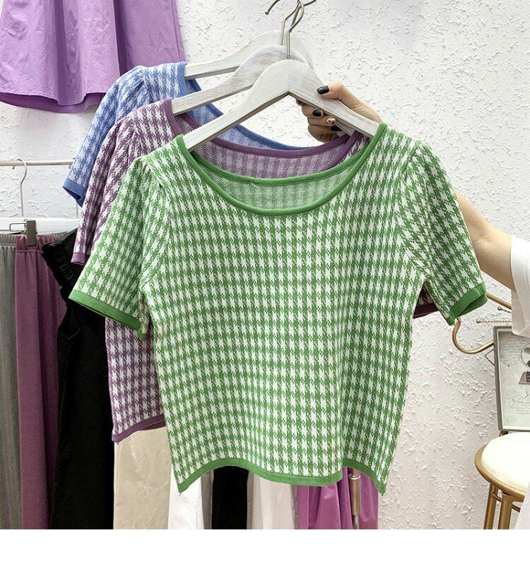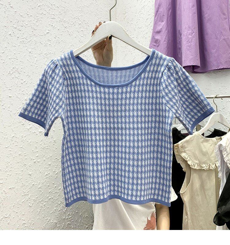 新品 サマー半袖スリーブニットラウンドネックプルオーバー スリムトップス ショート 夏物 ⦿韓国 オルチャン K-pop アイドル ジャケット スーツ ワンピース カーディガン ニット フーディー トレーナー キャミソール スカート シャツ ブラウス 5B8120580