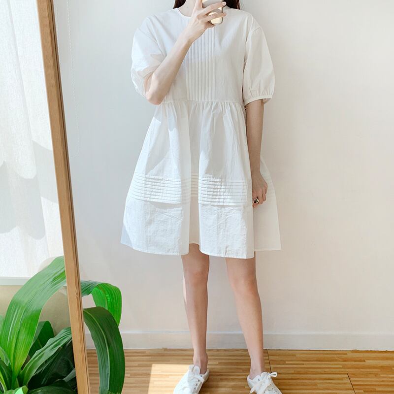 新品 ラウンドネックソリッド カラープリーツスリーブ ソリッドカラー ⦿韓国 オルチャン K-pop アイドル ジャケット スーツ ワンピース カーディガン ニット フーディー トレーナー キャミソール スカート シャツ ブラウス 5A6114988