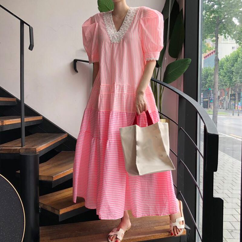 新品 ♡ストライプVネックレーススリーブ大人女子☆ ⦿韓国 オルチャン K-pop アイドル ジャケット スーツ ワンピース カーディガン ニット フーディー トレーナー キャミソール スカート シャツ ブラウス 5A8394017