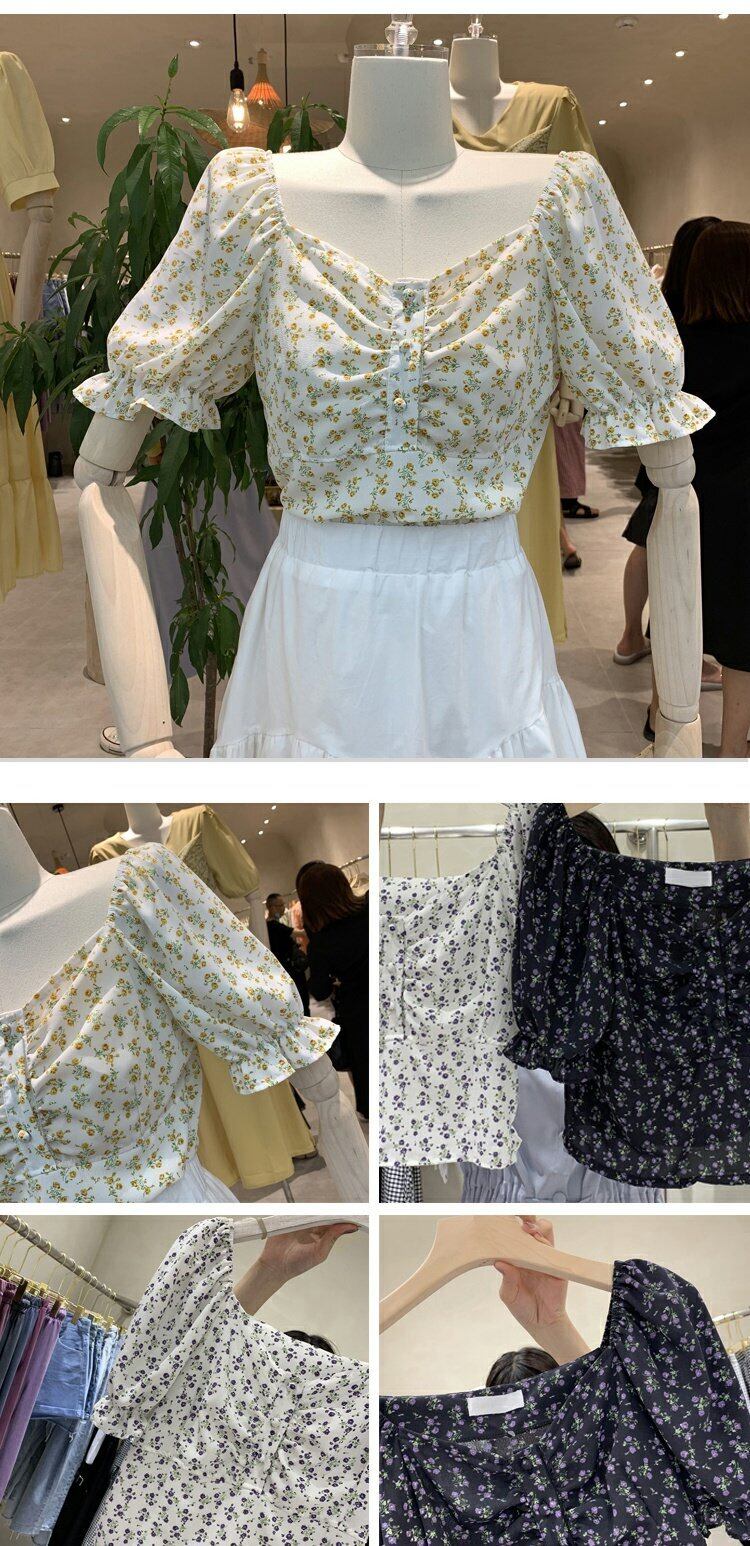 新品 スリーブシフォン花柄クロップドトップス ⦿韓国 オルチャン K-pop アイドル ジャケット スーツ ワンピース カーディガン ニット フーディー トレーナー キャミソール スカート シャツ ブラウス 5B6307125