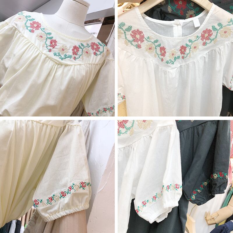 新品 カラーラウンドネックトップス レッド 刺繍 スウィート ピュア ⦿韓国 オルチャン K-pop アイドル ジャケット スーツ ワンピース カーディガン ニット フーディー トレーナー キャミソール スカート シャツ ブラウス 5B7509590