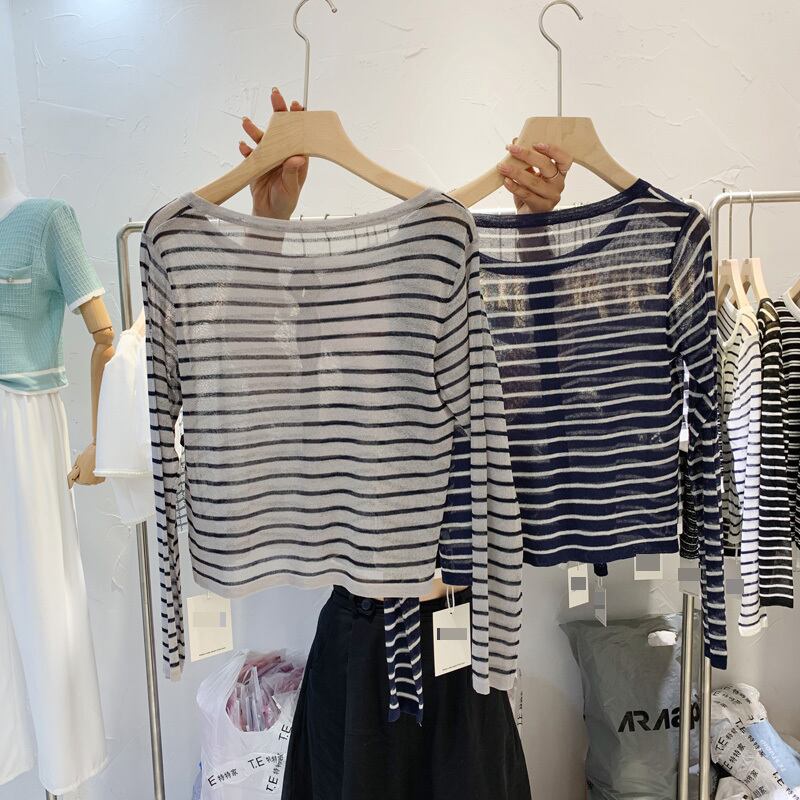 新品 ショートラウンドネック♥カワイイ♥ストライプニットカーディガン大人女子☆ ロング ⦿韓国 オルチャン K-pop アイドル ジャケット スーツ ワンピース カーディガン ニット フーディー トレーナー キャミソール スカート シャツ ブラウス 5B6766196