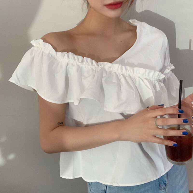 新品 ストラップレスアシンメトリーソリッド カラースリーブシャツブラウス大人女子☆ ソリッドカラー ステッチ ⦿韓国 オルチャン K-pop アイドル ジャケット スーツ ワンピース カーディガン ニット フーディー トレーナー キャミソール スカート シャツ ブラウス 5A0211291