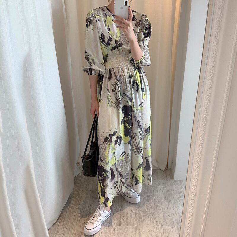 新品 ♡ラウンドネック★スリーブプリントロングスカート ランタンスリーブ ⦿韓国 オルチャン K-pop アイドル ジャケット スーツ ワンピース カーディガン ニット フーディー トレーナー キャミソール スカート シャツ ブラウス 5A8604249