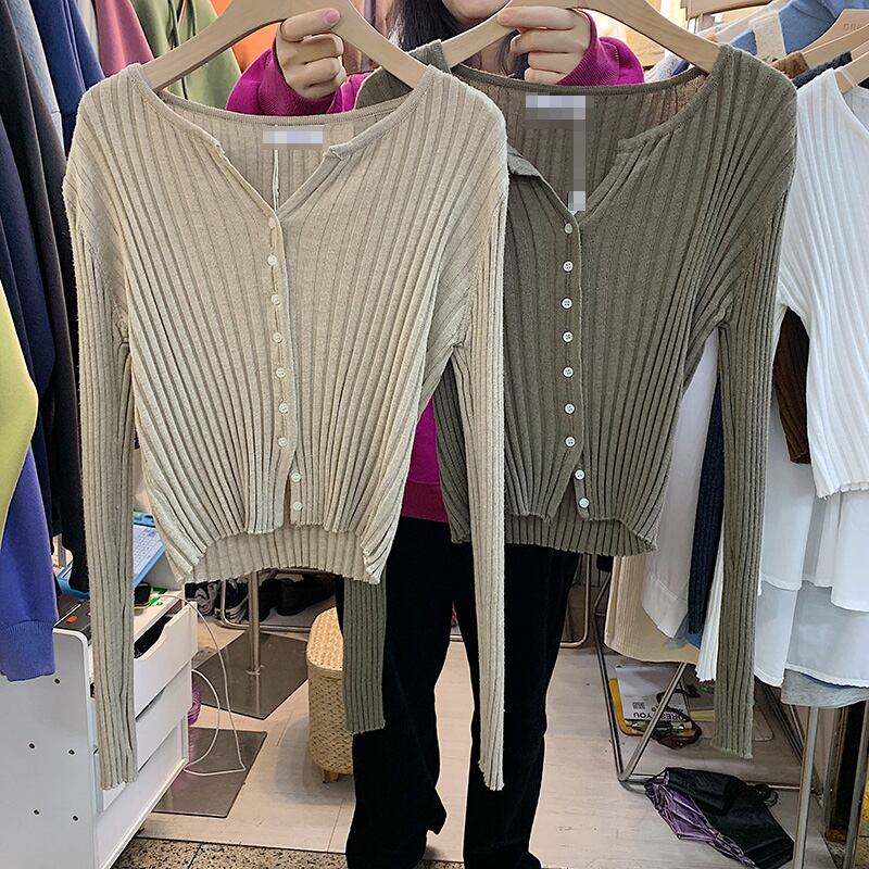 新品 ニットカーディガンソリッド カラーVネックスリムショートセーター ロング ソリッドカラー ⦿韓国 オルチャン K-pop アイドル ジャケット スーツ ワンピース カーディガン ニット フーディー トレーナー キャミソール スカート シャツ ブラウス 5B2234085
