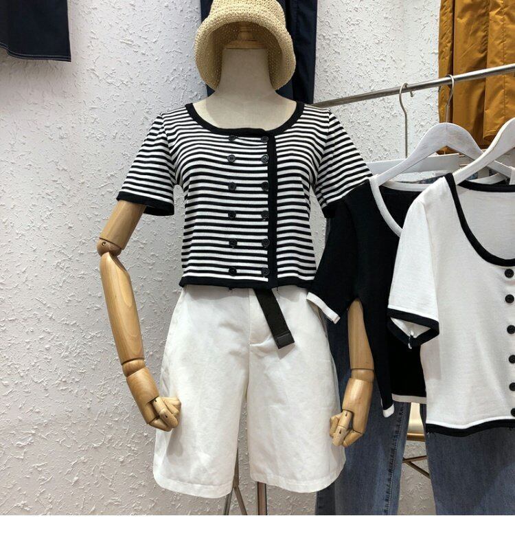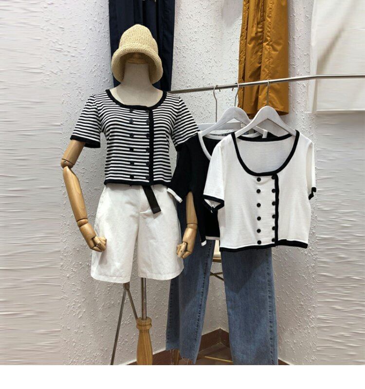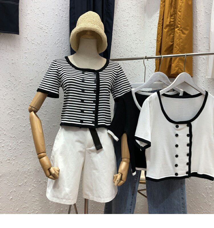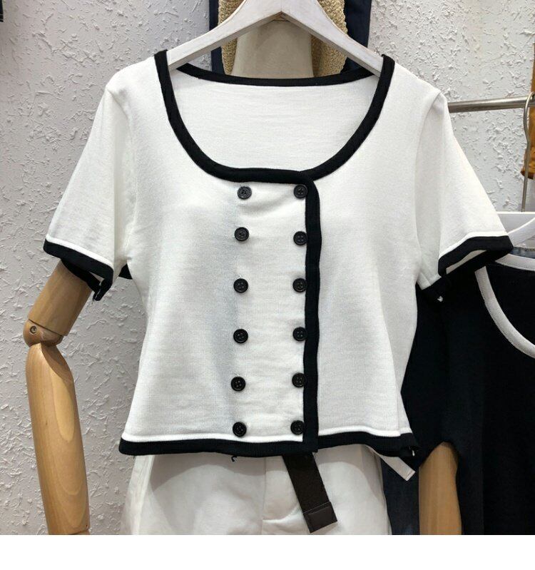 新品 ダブルブレストセーター ショートスリムトップス 大人女子☆ シルク ⦿韓国 オルチャン K-pop アイドル ジャケット スーツ ワンピース カーディガン ニット フーディー トレーナー キャミソール スカート シャツ ブラウス 5B5151475 | K clothig adult