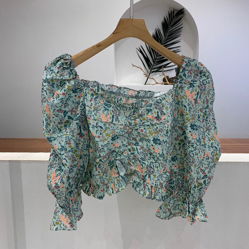 新品 サマースリーブシャツブラウスショート花柄トップス スウィート 夏物 ⦿韓国 オルチャン K-pop アイドル ジャケット スーツ ワンピース カーディガン ニット フーディー トレーナー キャミソール スカート シャツ ブラウス 5B1514344 | K clothig adult