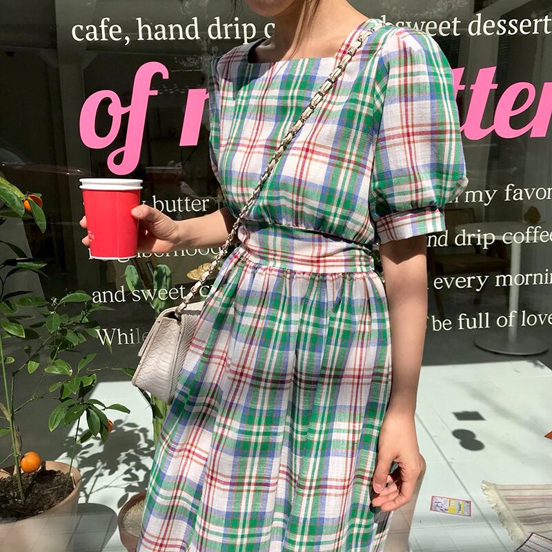 新品 グリーンチェック柄白レース★長袖スリーブ ロング ホワイト スクウェア ⦿韓国 オルチャン K-pop アイドル ジャケット スーツ ワンピース カーディガン ニット フーディー トレーナー キャミソール スカート シャツ ブラウス 5A9675391 | K clothig adult