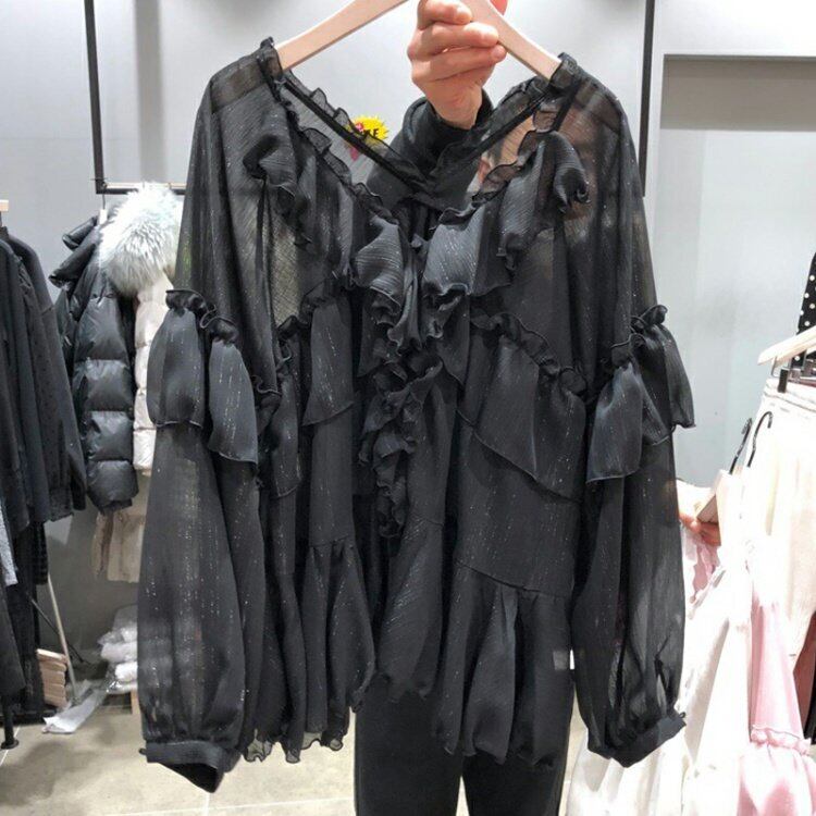 新品 Vネックシフォンシャツブラウストップス ロング ⦿韓国 オルチャン K-pop アイドル ジャケット スーツ ワンピース カーディガン ニット フーディー トレーナー キャミソール スカート シャツ ブラウス 5B2958830