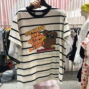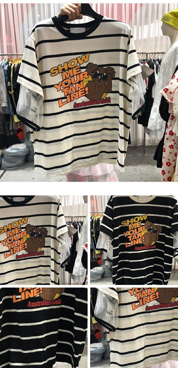 新品 ストライプレースラウンドネックTシャツ ステッチ ⦿韓国 オルチャン K-pop アイドル ジャケット スーツ ワンピース カーディガン ニット フーディー トレーナー キャミソール スカート シャツ ブラウス 5B3960929