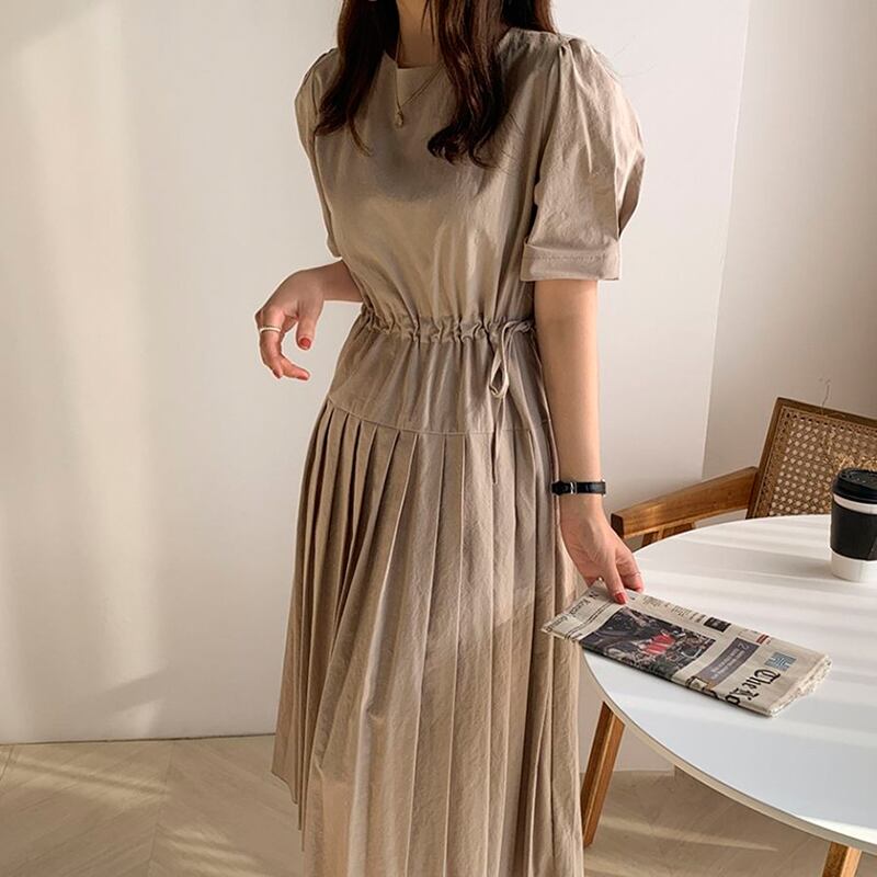 新品 白ラウンドネックギャザー★スリーブプリーツロングスカート ホワイト ⦿韓国 オルチャン K-pop アイドル ジャケット スーツ ワンピース カーディガン ニット フーディー トレーナー キャミソール スカート シャツ ブラウス 5A3996611