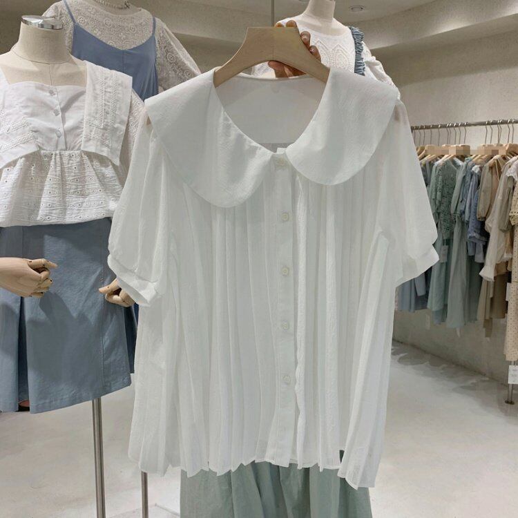新品 サマースリーブプリーツ♥カワイイ♥シャツブラウス大人女子☆ 夏物 ⦿韓国 オルチャン K-pop アイドル ジャケット スーツ ワンピース カーディガン ニット フーディー トレーナー キャミソール スカート シャツ ブラウス 5B1362018
