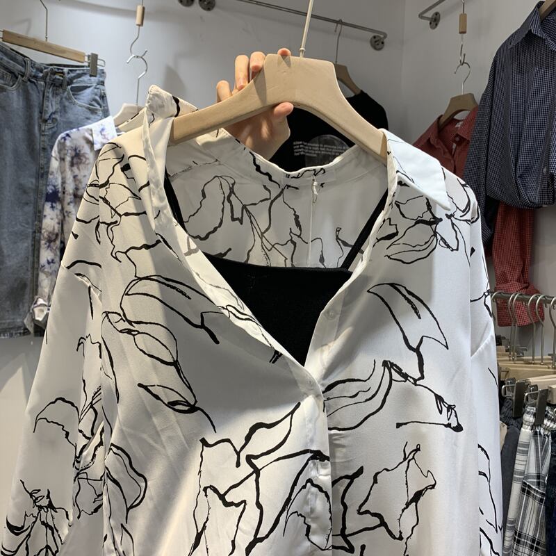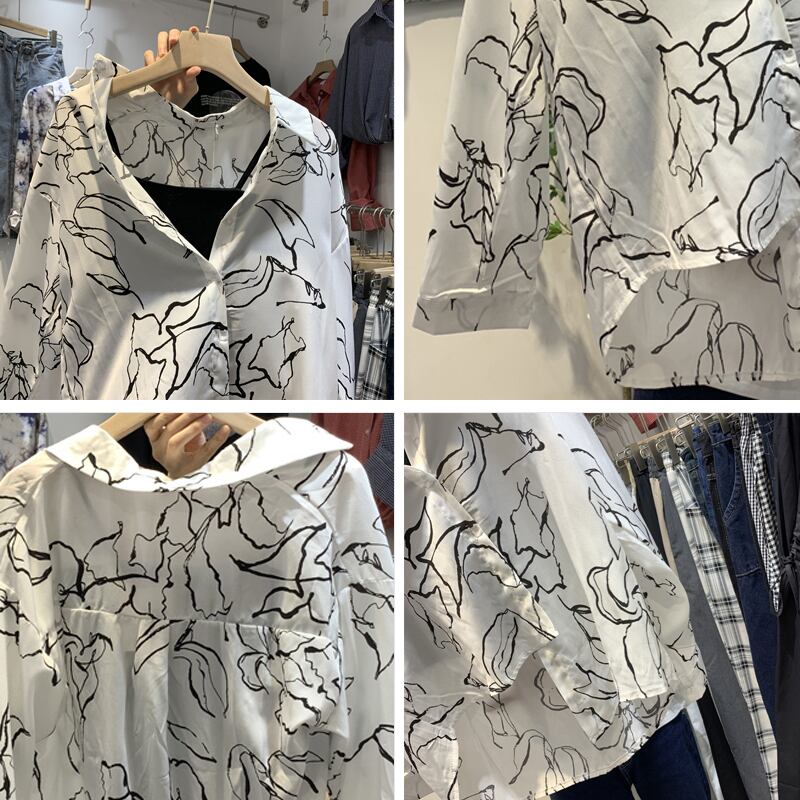新品 プリント柄シャツブラウス ロング ⦿韓国 オルチャン K-pop アイドル ジャケット スーツ ワンピース カーディガン ニット フーディー トレーナー キャミソール スカート シャツ ブラウス 5B3431837