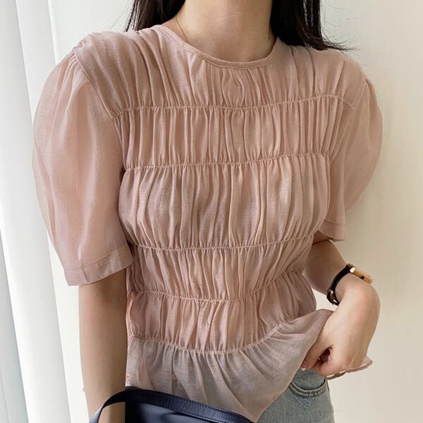 新品 ラウンドネックスリムスリーブシャツブラウストップス 大人女子☆ ⦿韓国 オルチャン K-pop アイドル ジャケット スーツ ワンピース カーディガン ニット フーディー トレーナー キャミソール スカート シャツ ブラウス 5A0423022