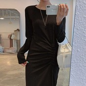 新品 ラウンドネックスリムサイドロング大人女子☆ ⦿韓国 オルチャン K-pop アイドル ジャケット スーツ ワンピース カーディガン ニット フーディー トレーナー キャミソール スカート シャツ ブラウス 5A5260130