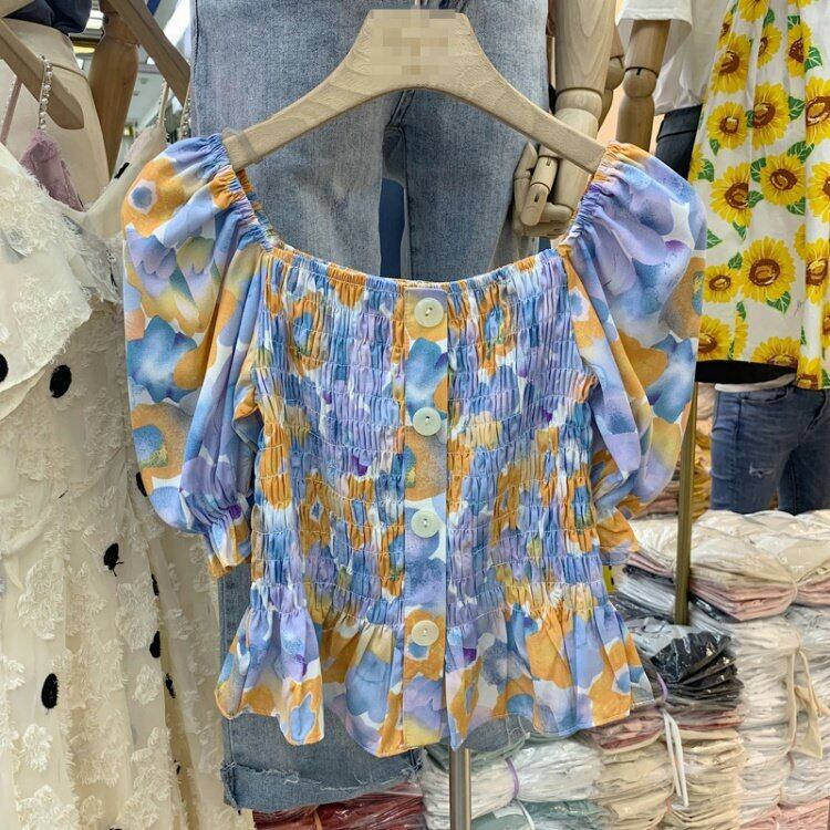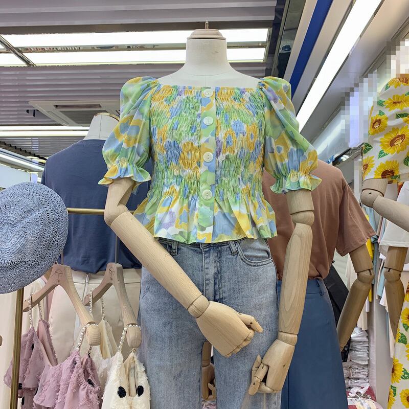 新品 サマー♡スリーブパターンプリーツショートブラウス 夏物 スクウェア ⦿韓国 オルチャン K-pop アイドル ジャケット スーツ ワンピース カーディガン ニット フーディー トレーナー キャミソール スカート シャツ ブラウス 5B2210400