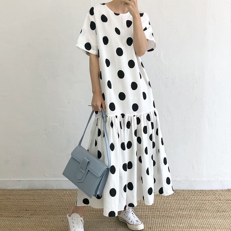 新品 スタンダードブラック白ラウンドネックカジュアルロングスカート ホワイト レトロ ⦿韓国 オルチャン K-pop アイドル ジャケット スーツ ワンピース カーディガン ニット フーディー トレーナー キャミソール スカート シャツ ブラウス 5A7453799