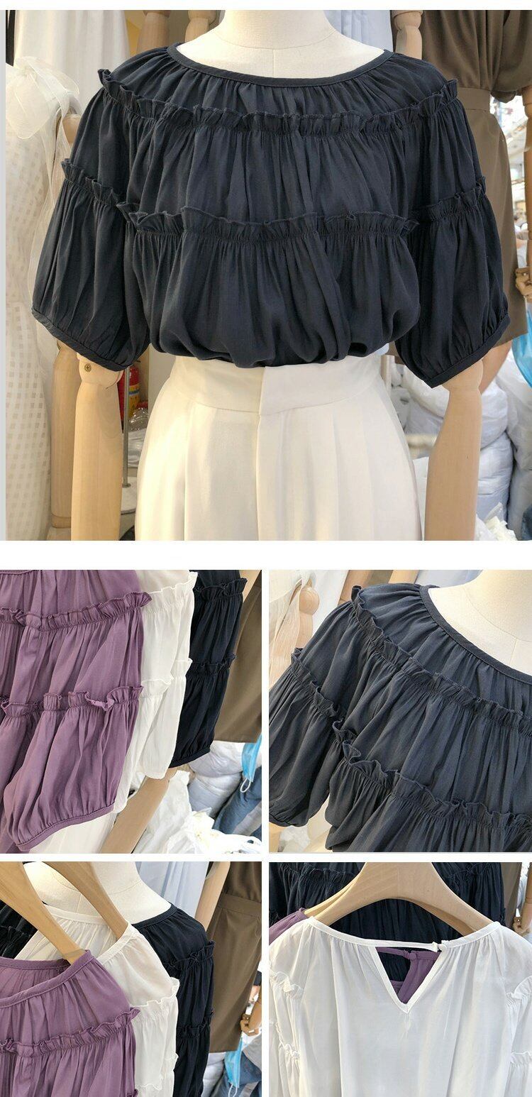 新品 ソリッド カラーラウンドネックブラウス 大人女子☆ スウィート ソリッドカラー ⦿韓国 オルチャン K-pop アイドル ジャケット スーツ ワンピース カーディガン ニット フーディー トレーナー キャミソール スカート シャツ ブラウス 5B3074067