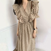 新品 スタンダード♡Vネッククロスラッフルシフォン水玉 レトロ ステッチ ⦿韓国 オルチャン K-pop アイドル ジャケット スーツ ワンピース カーディガン ニット フーディー トレーナー キャミソール スカート シャツ ブラウス 5A3158621 | K clothig adult