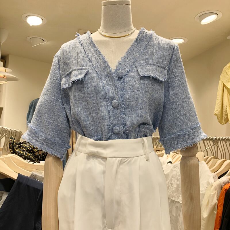 新品 サマーVネックトップス スウィート 夏物 ピュア ⦿韓国 オルチャン K-pop アイドル ジャケット スーツ ワンピース カーディガン ニット フーディー トレーナー キャミソール スカート シャツ ブラウス 5B1549913