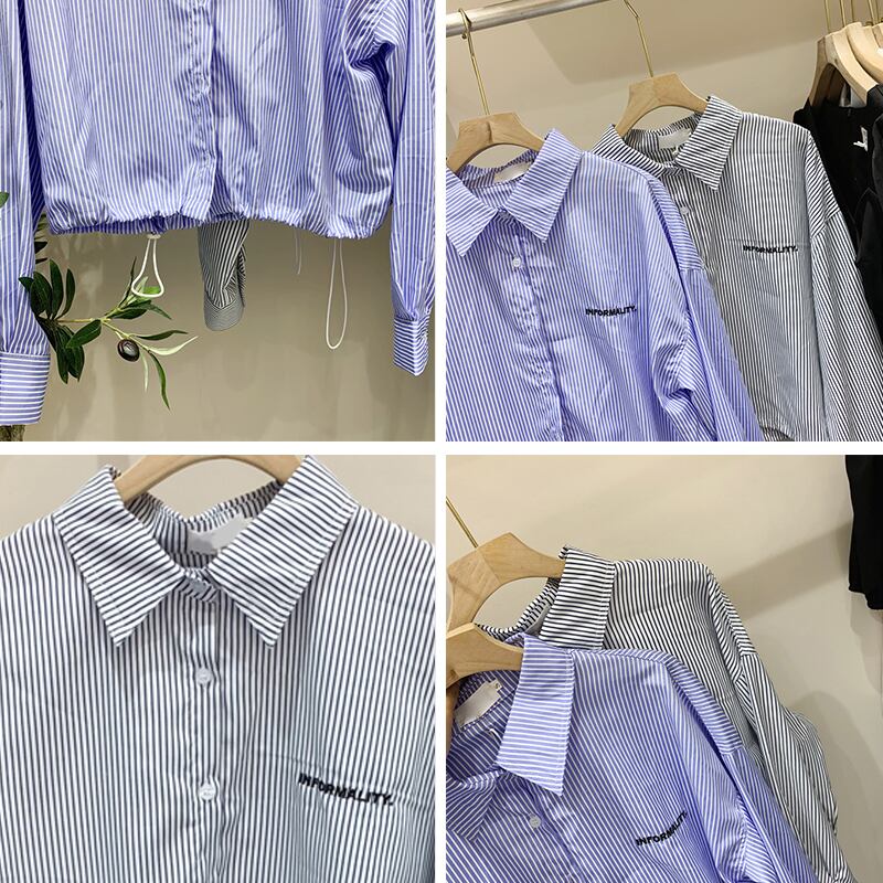 新品 ショートストライプシャツブラウスカーディガン レッド 刺繍 ⦿韓国 オルチャン K-pop アイドル ジャケット スーツ ワンピース カーディガン ニット フーディー トレーナー キャミソール スカート シャツ ブラウス 5B2493801 | K clothig adult