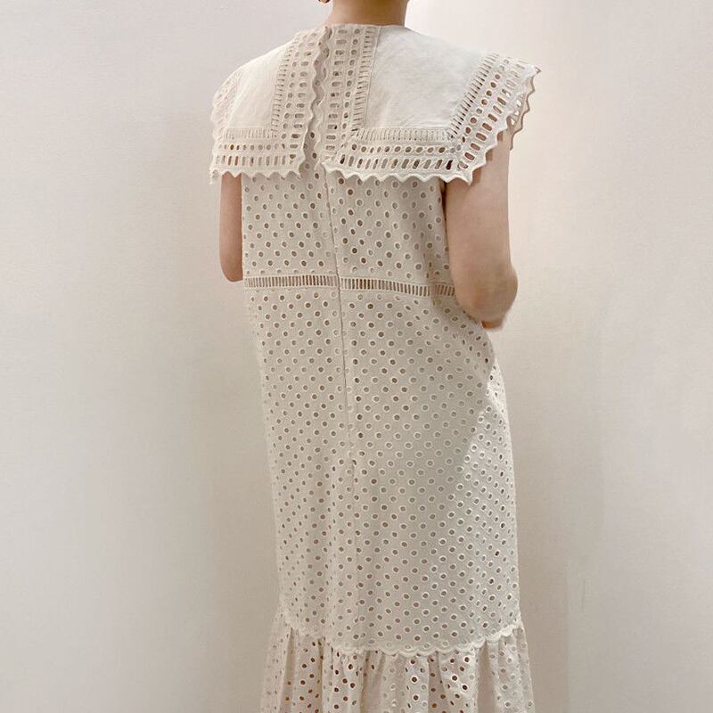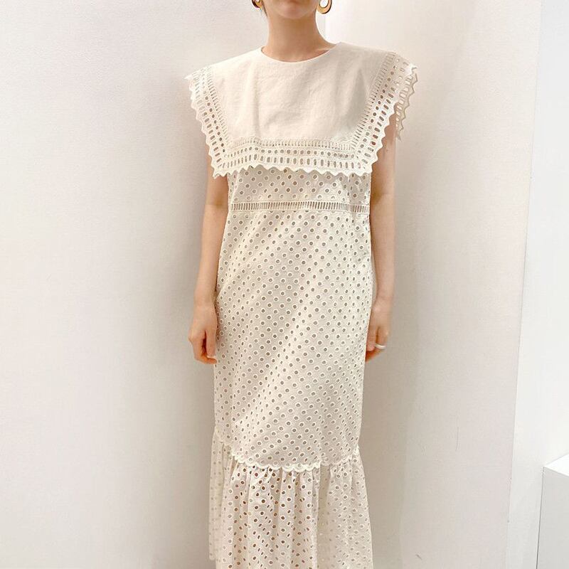 新品 ネイビー刺繍ノースリーブラッフルロングスカート エレガント ⦿韓国 オルチャン K-pop アイドル ジャケット スーツ ワンピース カーディガン ニット フーディー トレーナー キャミソール スカート シャツ ブラウス 5A7863706 | K clothig adult
