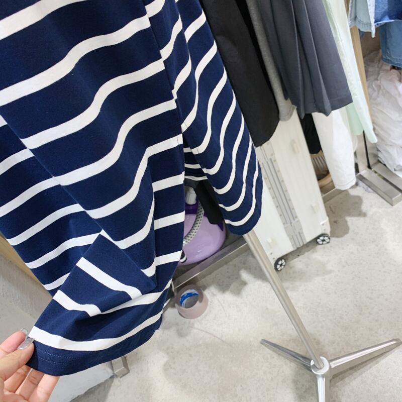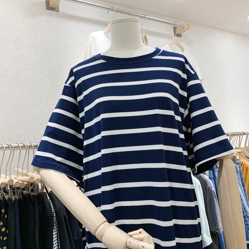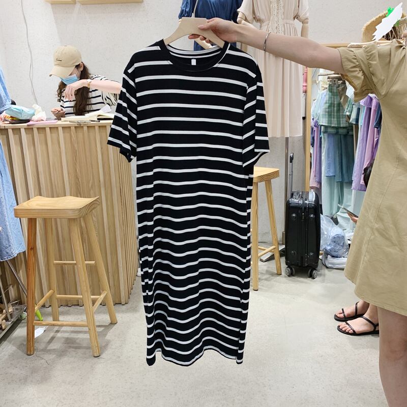 新品 サマーロング♡ルーズ♥カワイイ♥ストライプ半袖スリーブTシャツ ドレス ワンピース大人女子☆ ショート 夏物 ⦿韓国 オルチャン K-pop アイドル ジャケット スーツ ワンピース カーディガン ニット フーディー トレーナー キャミソール スカート シャツ ブラウス 5B1098934