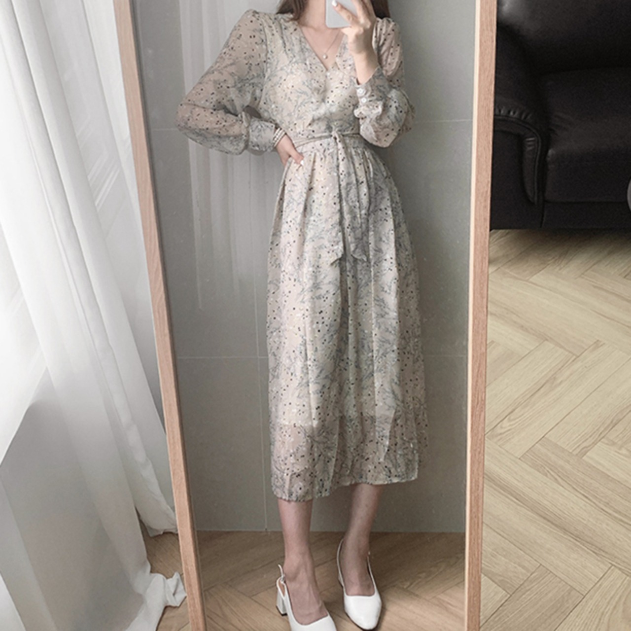 新品 プリント♥カワイイ♥Vネック★シフォン ロング ⦿韓国 オルチャン K-pop アイドル ジャケット スーツ ワンピース カーディガン ニット フーディー トレーナー キャミソール スカート シャツ ブラウス 5A2377444 | K clothig adult