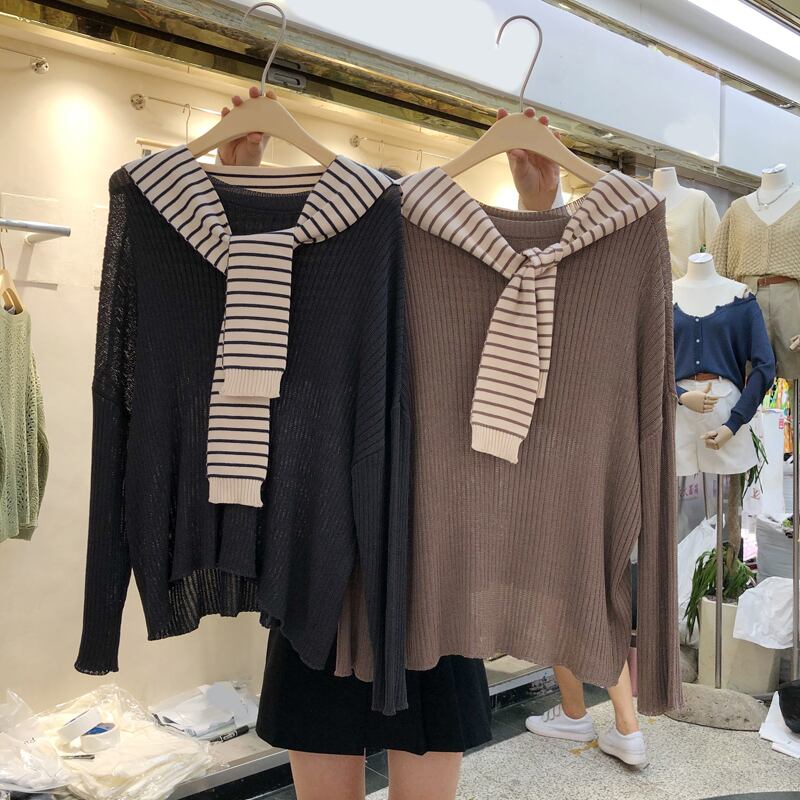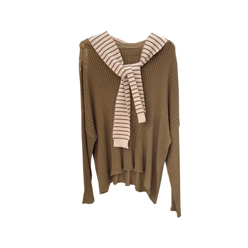 新品 カラーラウンドネックニットトップス ストライプ スウィート ピュア ⦿韓国 オルチャン K-pop アイドル ジャケット スーツ ワンピース カーディガン ニット フーディー トレーナー キャミソール スカート シャツ ブラウス 5B1053143