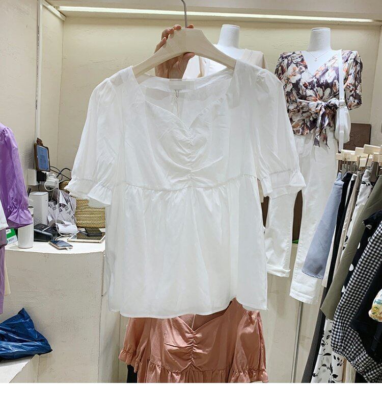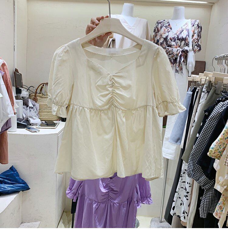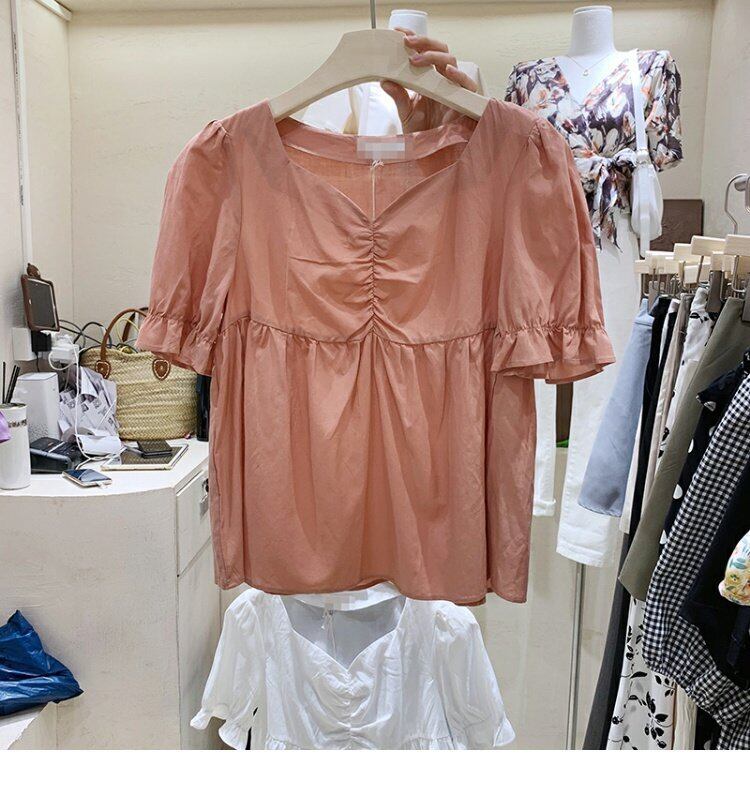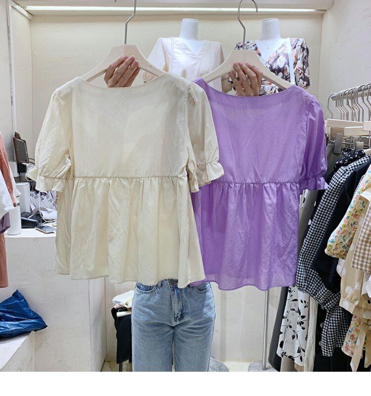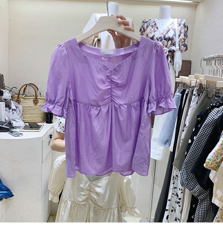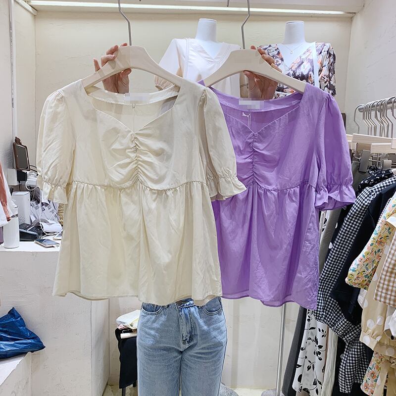 新品 スリーブシャツブラウス♡Vネックプルオーバー ⦿韓国 オルチャン K-pop アイドル ジャケット スーツ ワンピース カーディガン ニット フーディー トレーナー キャミソール スカート シャツ ブラウス 5B8866855