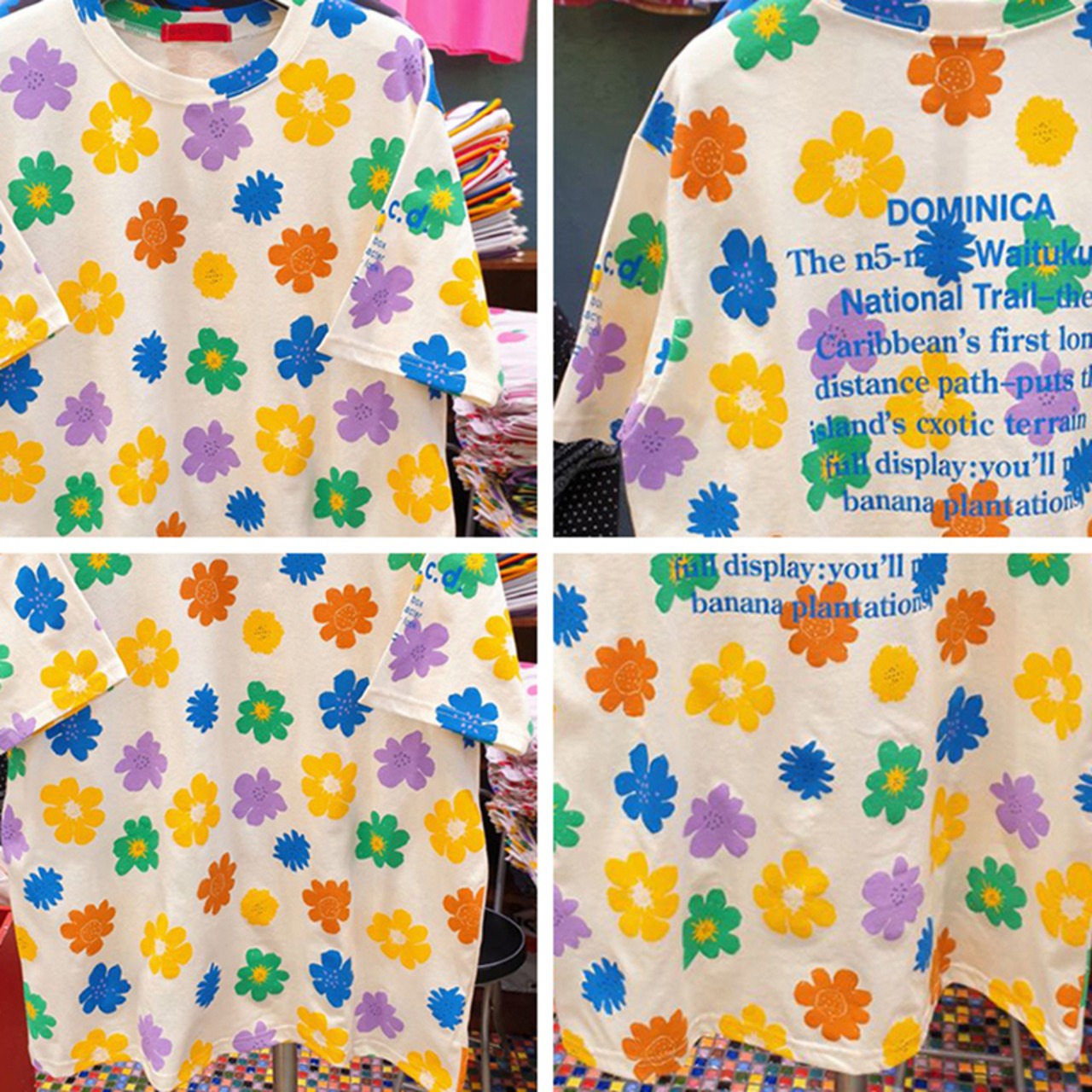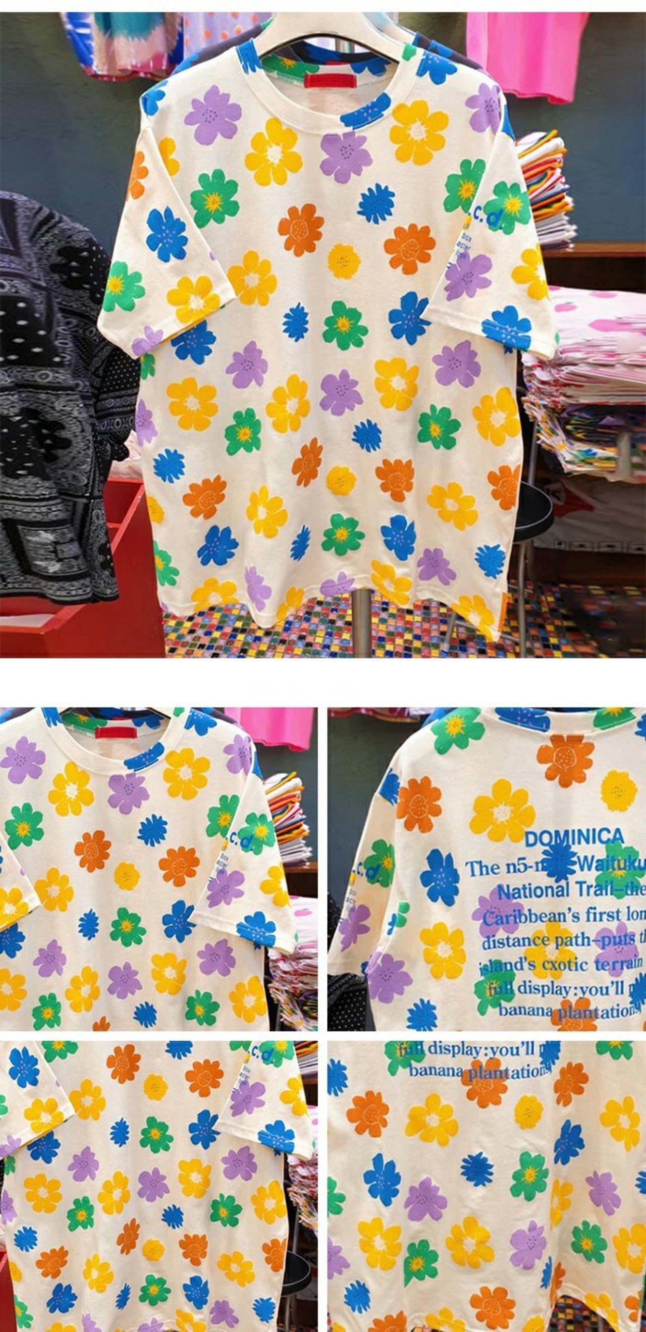 新品 花柄プリント柄カジュアルTシャツ 大きめサイズ フラワーデザイン ⦿韓国 オルチャン K-pop アイドル ジャケット スーツ ワンピース カーディガン ニット フーディー トレーナー キャミソール スカート シャツ ブラウス 5B8362891