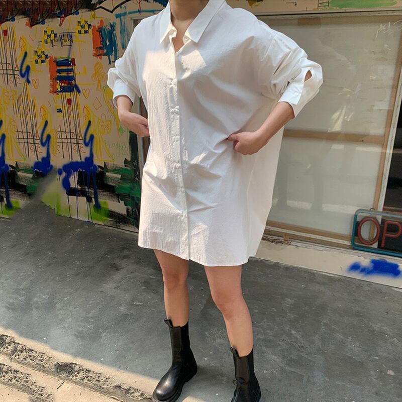 新品 カラー白シャツブラウス ロング ホワイト ⦿韓国 オルチャン K-pop アイドル ジャケット スーツ ワンピース カーディガン ニット フーディー トレーナー キャミソール スカート シャツ ブラウス 5A9762529