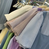 新品 サマーチェック柄ラウンドネックスリーブ♥カワイイ♥トップス 夏物 ⦿韓国 オルチャン K-pop アイドル ジャケット スーツ ワンピース カーディガン ニット フーディー トレーナー キャミソール スカート シャツ ブラウス 5B3293495