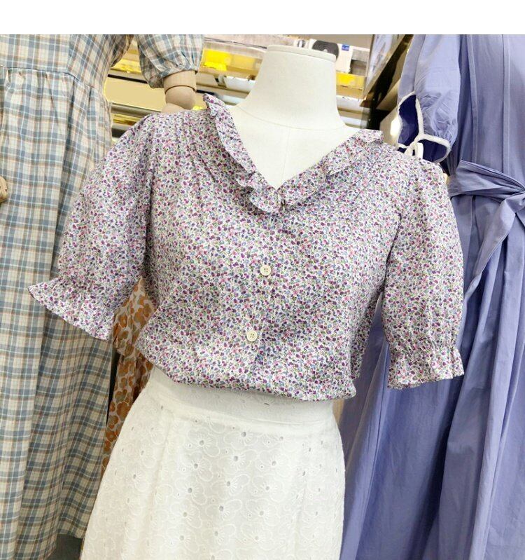 新品 サマー花柄シングルブレストスリーブトップス スウィート 夏物 ⦿韓国 オルチャン K-pop アイドル ジャケット スーツ ワンピース カーディガン ニット フーディー トレーナー キャミソール スカート シャツ ブラウス 5B0032396