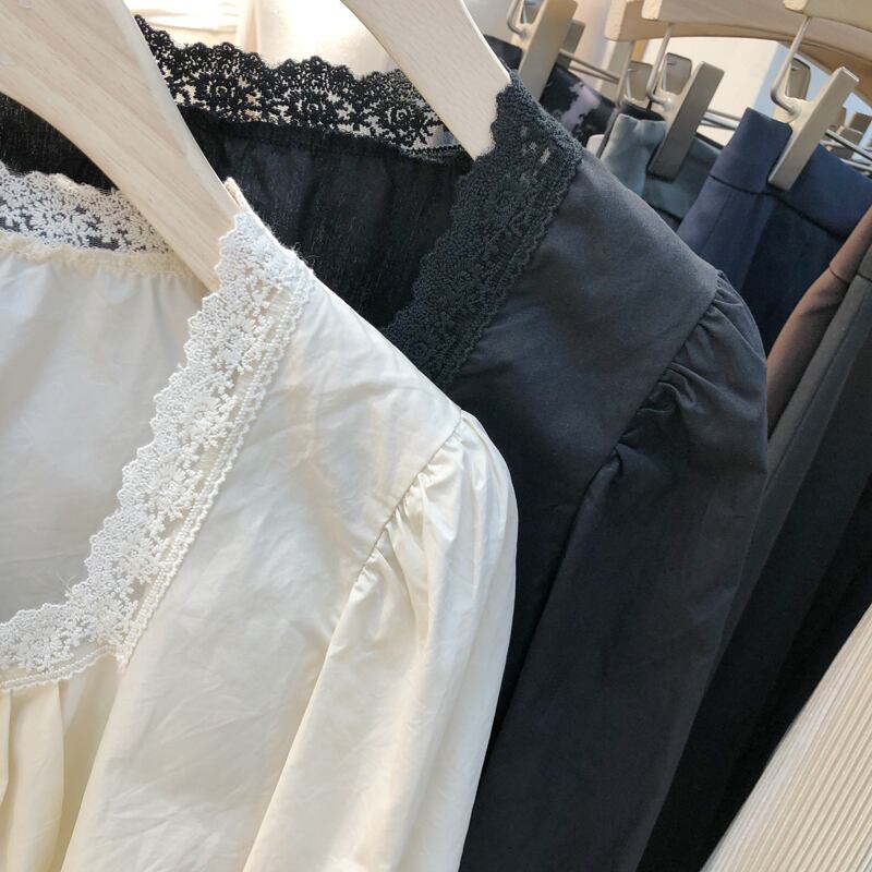 新品 ♡カラーレースギャザー★トップス スウィート ピュア ⦿韓国 オルチャン K-pop アイドル ジャケット スーツ ワンピース カーディガン ニット フーディー トレーナー キャミソール スカート シャツ ブラウス 5B7652496