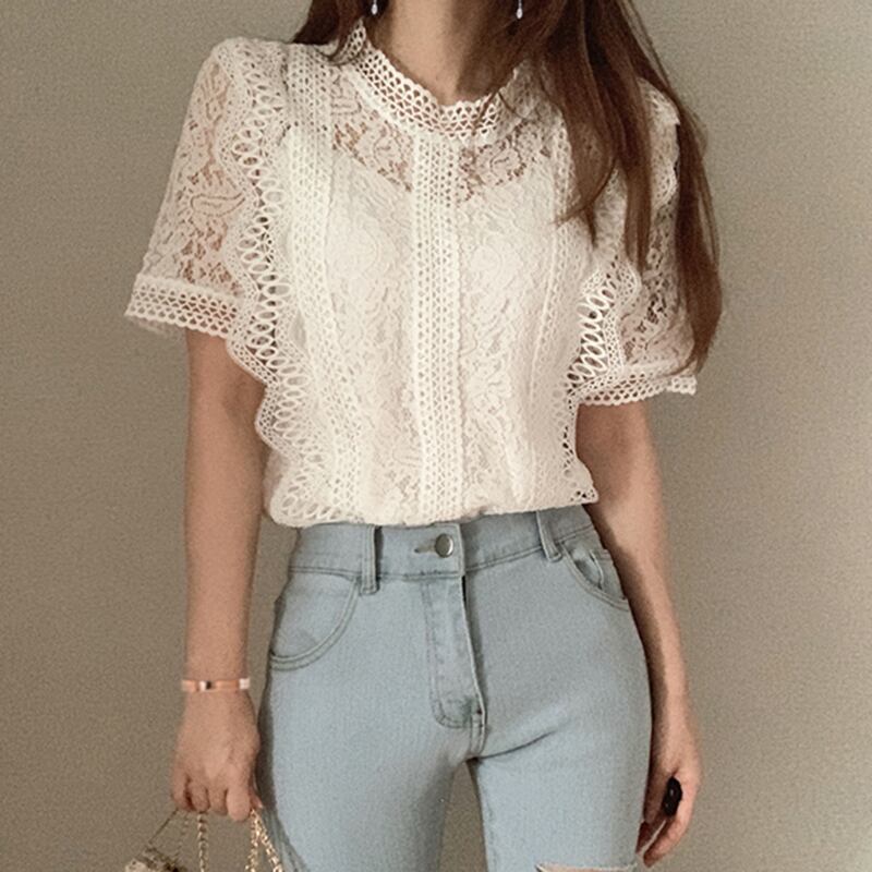 新品 ♥カワイイ♥レースシャツブラウス スウィート ステッチ ⦿韓国 オルチャン K-pop アイドル ジャケット スーツ ワンピース カーディガン ニット フーディー トレーナー キャミソール スカート シャツ ブラウス 5A8262911