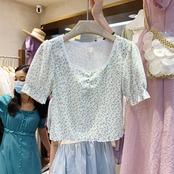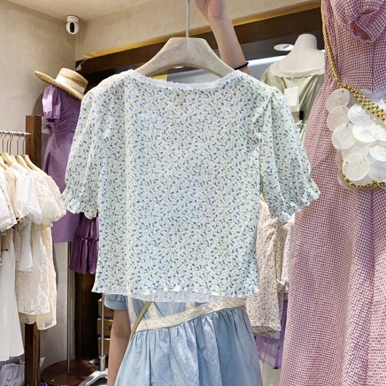 新品 サマーレース花柄カラースリーブ半袖シャツブラウス大人女子☆ ショート ランタンスリーブ 半袖スリーブ 夏物 スクウェア ⦿韓国 オルチャン K-pop アイドル ジャケット スーツ ワンピース カーディガン ニット フーディー トレーナー キャミソール スカート シャツ ブラウス 5B6633330