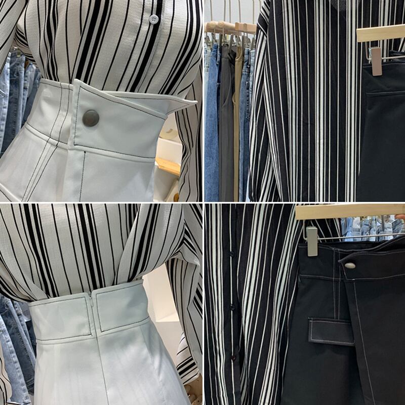 新品 ストライプシャツブラウススカート ロング ⦿韓国 オルチャン K-pop アイドル ジャケット スーツ ワンピース カーディガン ニット フーディー トレーナー キャミソール スカート シャツ ブラウス 5B8103966