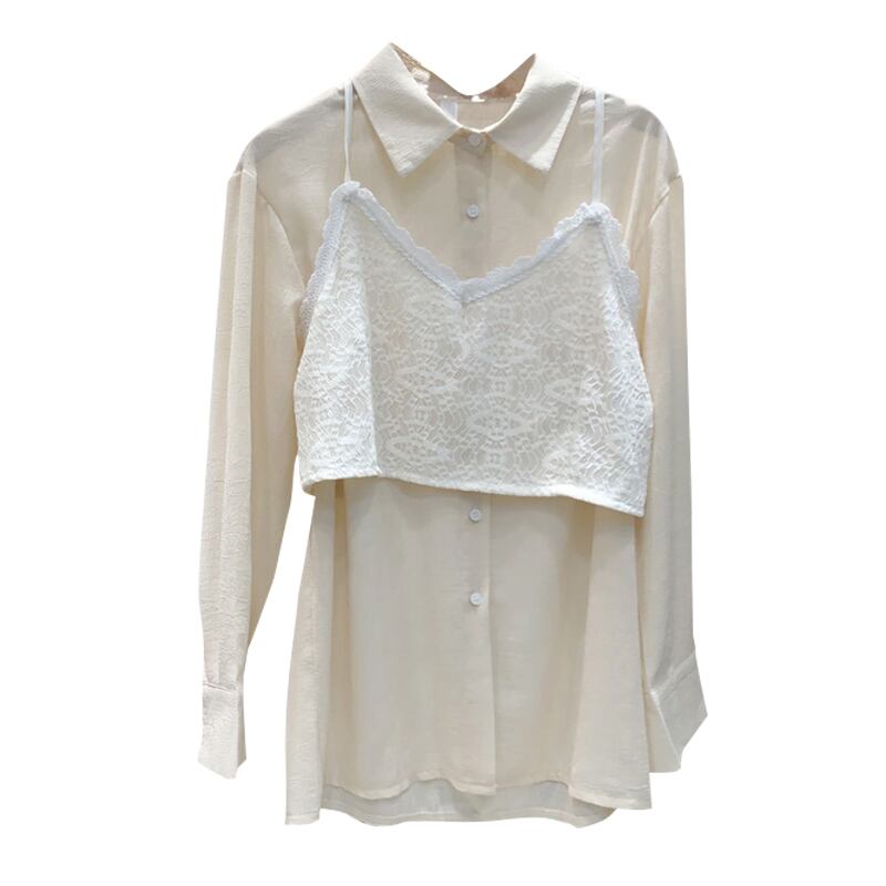 新品 ソリッド カラーブラウス レース ピュア ソリッドカラー ⦿韓国 オルチャン K-pop アイドル ジャケット スーツ ワンピース カーディガン ニット フーディー トレーナー キャミソール スカート シャツ ブラウス 5B5110554