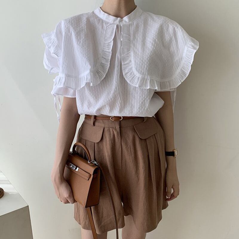 新品 スタンダードスリーブシャツブラウスカジュアルパンツ ショートパンツ大人女子☆ レトロ ⦿韓国 オルチャン K-pop アイドル ジャケット スーツ ワンピース カーディガン ニット フーディー トレーナー キャミソール スカート シャツ ブラウス 5A8090514
