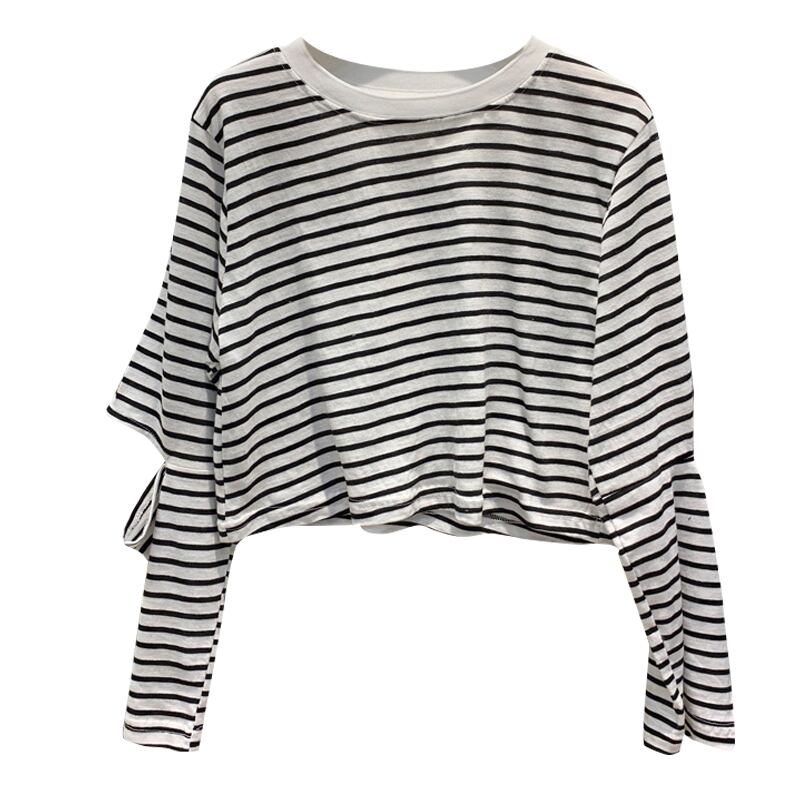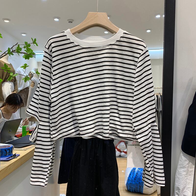 新品 ラウンドネック♥カワイイ♥ニットストライプトップス ロング ⦿韓国 オルチャン K-pop アイドル ジャケット スーツ ワンピース カーディガン ニット フーディー トレーナー キャミソール スカート シャツ ブラウス 5B0271133