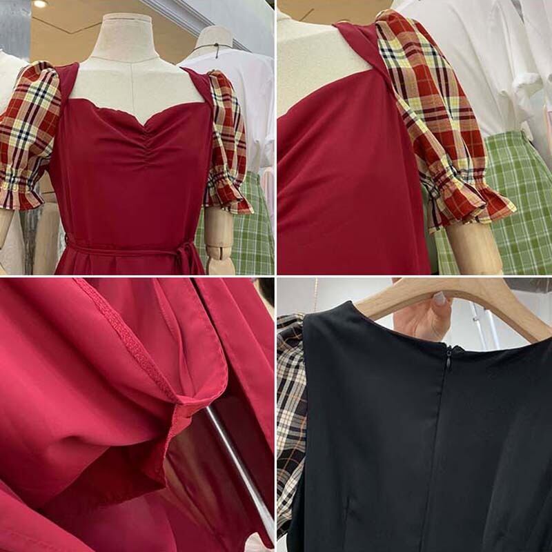 新品 サマーチェック柄スリーブスリムシフォン スウィート 夏物 ⦿韓国 オルチャン K-pop アイドル ジャケット スーツ ワンピース カーディガン ニット フーディー トレーナー キャミソール スカート シャツ ブラウス 5B4482111