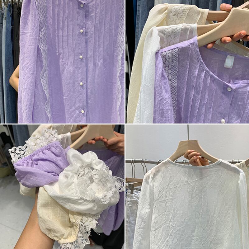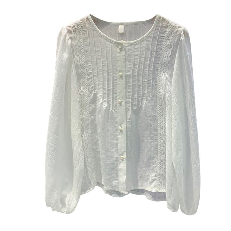 新品 レースラウンドネックソリッド カラーシャツブラウス ロング ソリッドカラー ステッチ ⦿韓国 オルチャン K-pop アイドル ジャケット スーツ ワンピース カーディガン ニット フーディー トレーナー キャミソール スカート シャツ ブラウス 5B7603475