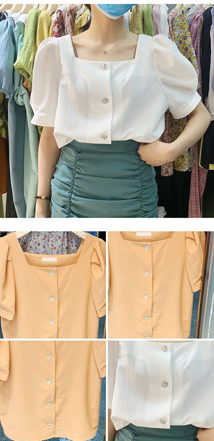 新品 サマー♡シングルブレストスリーブボタン半袖シャツブラウスカーディガントップス ショート 半袖スリーブ 夏物 スクウェア ⦿韓国 オルチャン K-pop アイドル ジャケット スーツ ワンピース カーディガン ニット フーディー トレーナー キャミソール スカート シャツ ブラウス 5B8337496